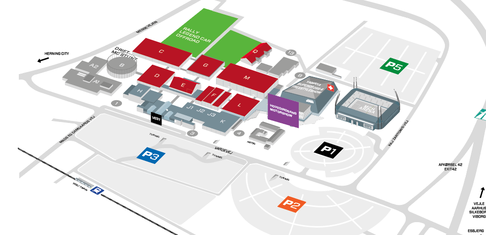 Her får du et hurtigt overblik over, hvordan du nemmest kommer til Motorshow ved MCH Messecenter Herning – uanset om du kommer i bil, med bus eller tog.